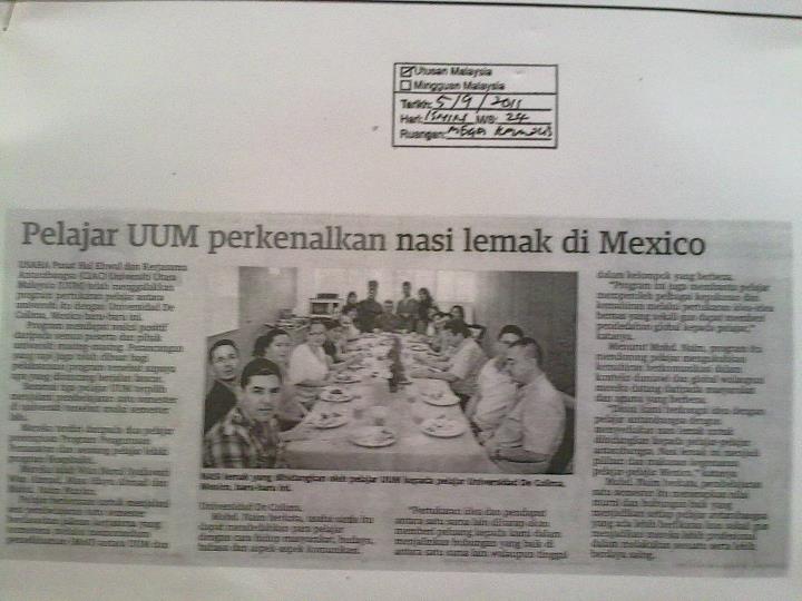 detik terakhir di Mexico,takkan aku lupa masak banyak-banyak masakan malaysia.alhamdullilah masuk paper.jadik kebanggaan UUM jugak.hihi.bulan ini jugak,aku pulang ke Malaysia.=)